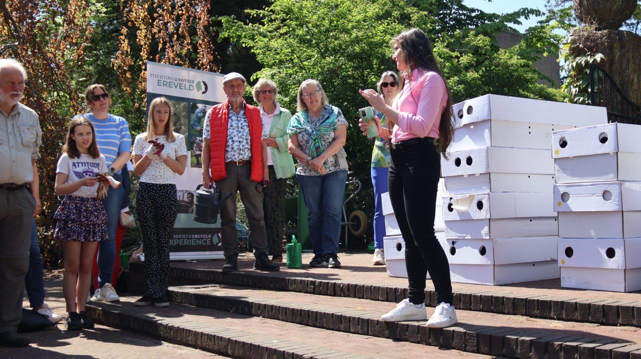 Na afloop van het plaatsen van bloemen hadden de Oezbeken, die voor alle deelnemers traditioneel “plov” hadden gemaakt, een verrassing in petto. Natalia de Jong en Remco Reiding kregen een onderscheiding voor alle goede werk van de Stichting. AmersfoortGezien was erbij om alles op beeld vast te leggen.