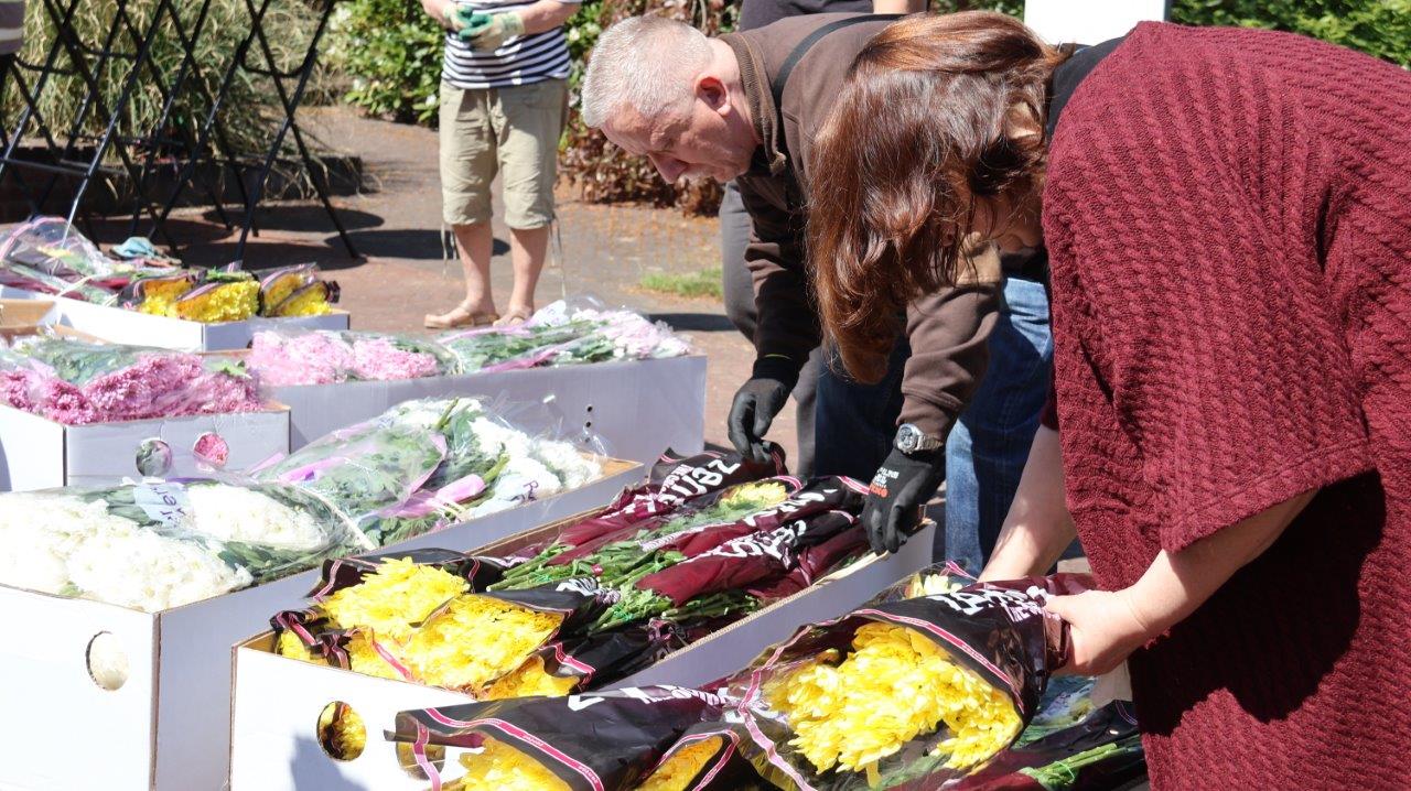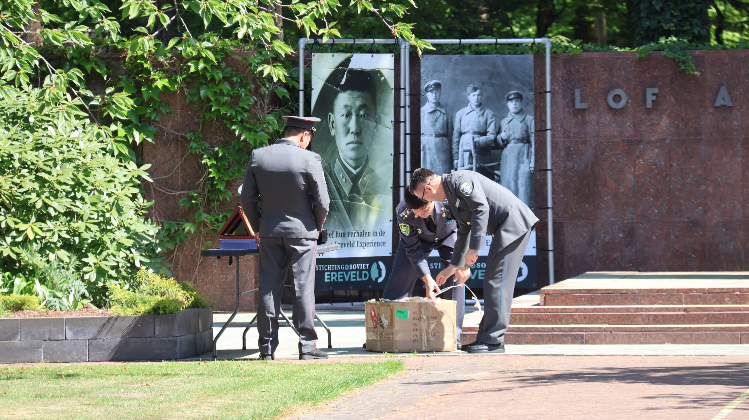 Veel dank aan de vaste vrijwilligers van Stichting Sovjet Ereveld en de vele tientallen anderen die op 3 mei kwamen helpen met het plaatsen van de bloemen en de foto’s!