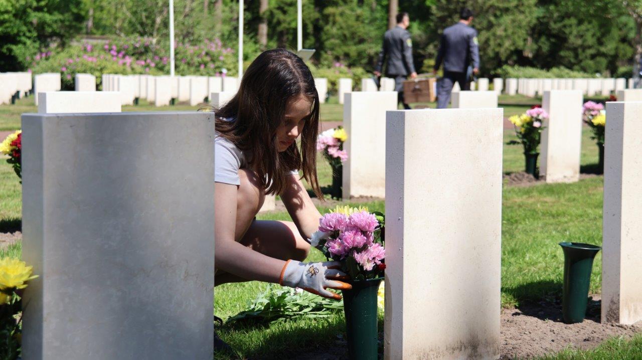 Het hele Sovjet Ereveld staat tijdens de herdenkingsweek vol met bossen bloemen. Op alle 865 graven een boeket. Foto’s van soldaten werden bij de graven geplaatst, zodat de stenen een gezicht krijgen.